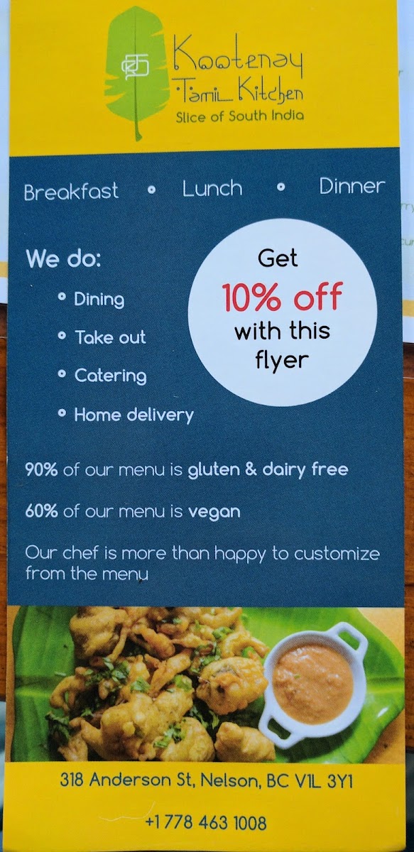 Welcome to Kootenay Tamil Kitchen, a culinary haven located at 660 Baker St, Nelson, BC. Known for its vibrant South Indian and Tamil cuisine, this delightful restaurant has captured the hearts of food enthusiasts and locals alike.